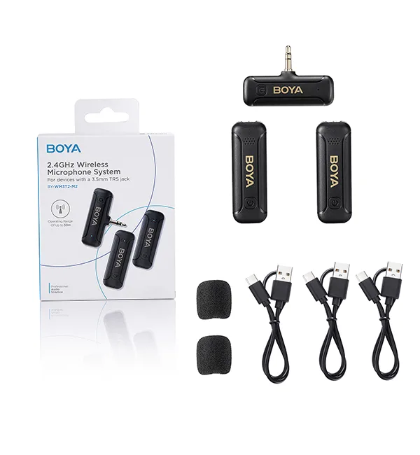 میکروفون بیسیم BOYA WM3T2-M2 یکی از پیشرفتهترین میکروفونهای بیسیم برند BOYA است که بهصورت ویژه برای ضبط حرفهای صدا با دوربینها طراحی شده است.